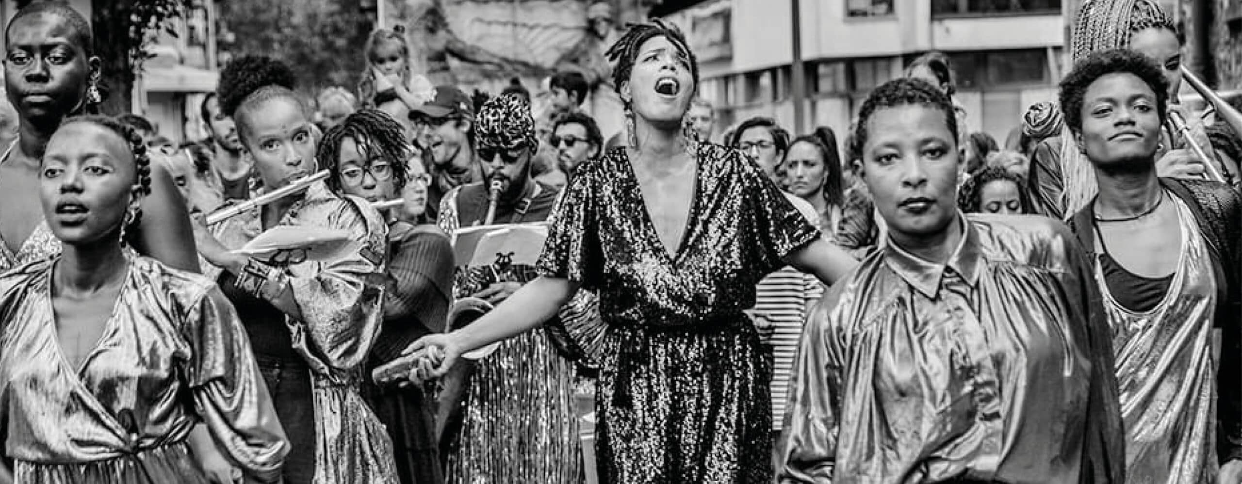 Inspirée des fanfares de la Nouvelle -Orléans, la chorégraphe Sandra Sainte Rose Franchine investit l’espace public avec force et créativité. 30 nuances de noir(es) est une parade chorégraphique où 18 artistes réaffirment leur pouvoir et leur identité à travers des danses nées dans les rues et les clubs d’Amérique : le waacking et le locking. Un spectacle rythmé et engagé qui résonne avec l’actualité !